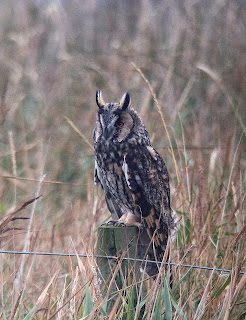 Cley had to be next, with a Long Eared Owl apparently showing on the shingle bank close to North hide! We headed along the shingle only to be told that it was flushed by a runner and had re-located to a post closer to the east bank. We weren't to be disappointed however, with the Long Eared Owl showing superbly well. We enjoyed it for a good 25 minutes before moving on. I'd do flipping well to ever get better views!